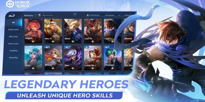 Game ini menawarkan berbagai pahlawan dengan kemampuan dan peran yang berbeda, termasuk tank, assassin, mage, marksman, dan support. Setiap pahlawan memiliki keterampilan unik yang mempengaruhi gaya bermain dan strategi tim.