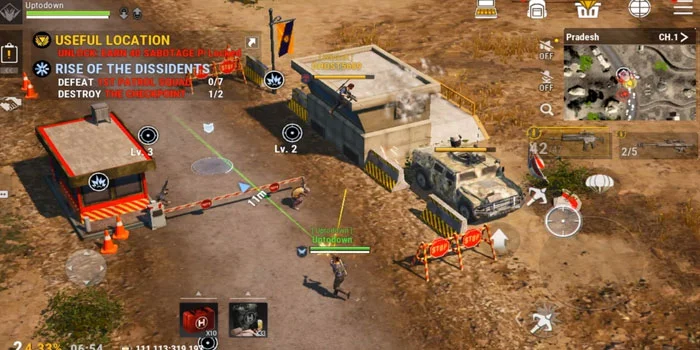 Game ini dirancang dengan kontrol sentuh yang dioptimalkan untuk perangkat mobile, dengan tombol virtual untuk bergerak, menembak, dan mengendalikan kendaraan. UI dirancang untuk memudahkan navigasi dan memberikan informasi yang diperlukan tanpa mengganggu pengalaman bermain.