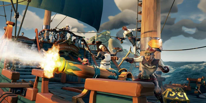 - Gaya Seni Kartunis: Sea of Thieves mengusung gaya visual yang cerah dan bergaya kartun, dengan desain karakter dan lingkungan yang penuh warna dan ekspresif. ini memberi kesan yang menyenangkan dan tidak terlalu realistis, yang cocok dengan tema bajak laut fantasi.